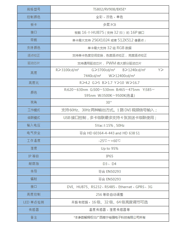備注 | *本參數解釋權歸廣西南寧桂強電子科技有限公司所有 |