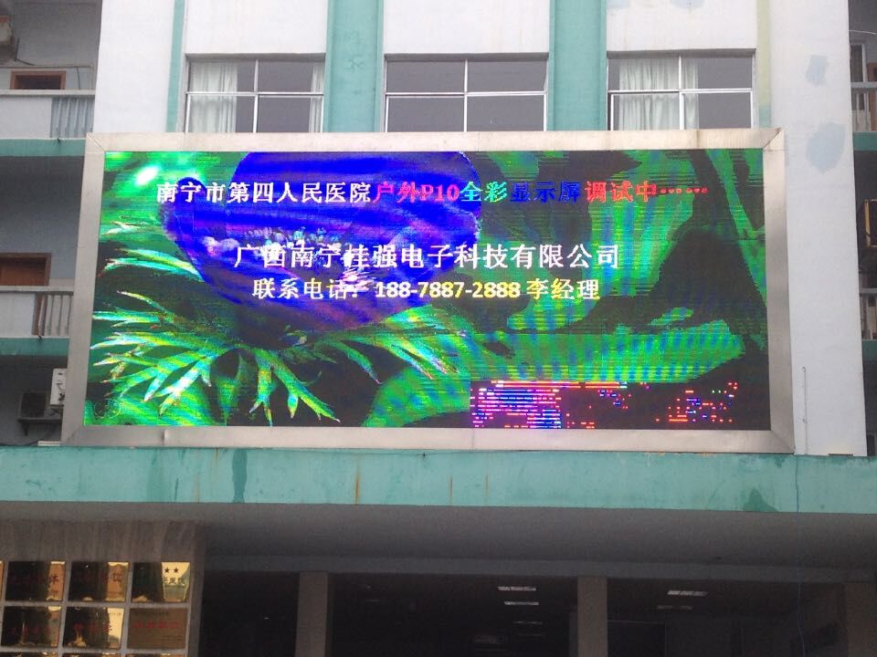 2、案例名稱:項目名稱命名:南寧市第四人民醫院戶外P10全彩LED顯示屏 20平方