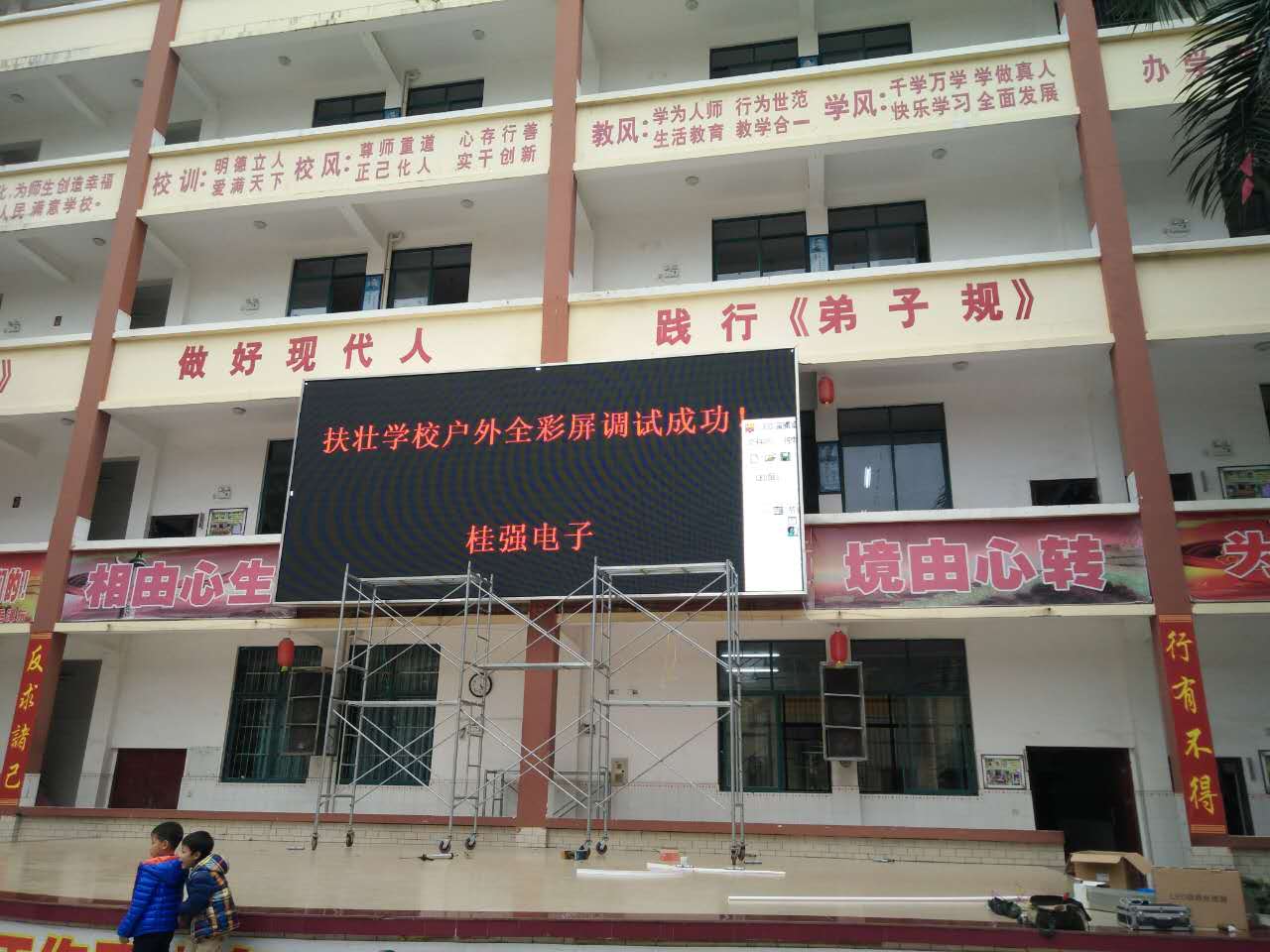 2、案例名稱:項目名稱命名:南寧市扶壯學校戶外P10全彩LED顯示屏 30平方