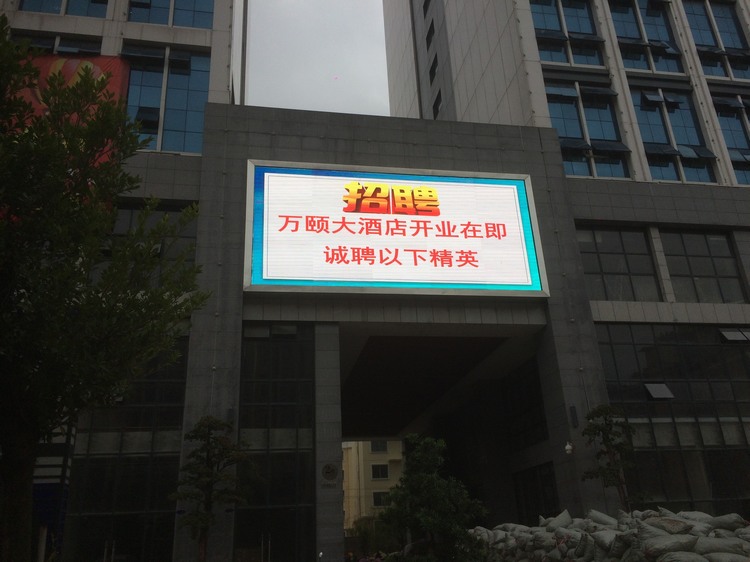 2、案例名稱:項目名稱命名:欽州市萬頤大酒店戶外P8全彩LED顯示屏 50平方
